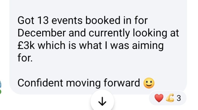 I’m forever grateful for your support and guidance! I feel like I’ve only scratched the surface of the mastermind’s vault too, there is still so much more content to do - I’ve done it with a baby on my hip, we’ve closed the calendar for this year and already have 20 bookings secured for 2025! I think you’ve brought out the real me, the stubborness in me! I KNOW I can achieve what I have set out to do, I feel totally empowered! I feel like I am being a sponge, soaking in the information and using it. You are heaven sent, thank you so much!
