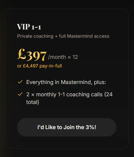 Through live coaching and structured support, we shift the behaviours and beliefs that keep you playing small, so you can attract and confidently receive more.