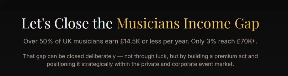 Having spent over 20 years working in live events and live music, I know that gap can be closed deliberately. Not through luck, not through a swanky agent or endless TV syncs, but by stepping off the feast-or-famine hamster wheel of gig-to-gig survival, undercharging, and chasing enquiries that go nowhere.